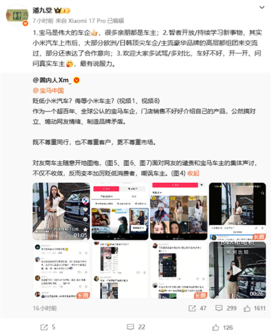 宝马门店主播暗讽小米汽车 小米高管下场回应引热议