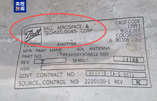 导弹残片上标有美企“Ball公司”