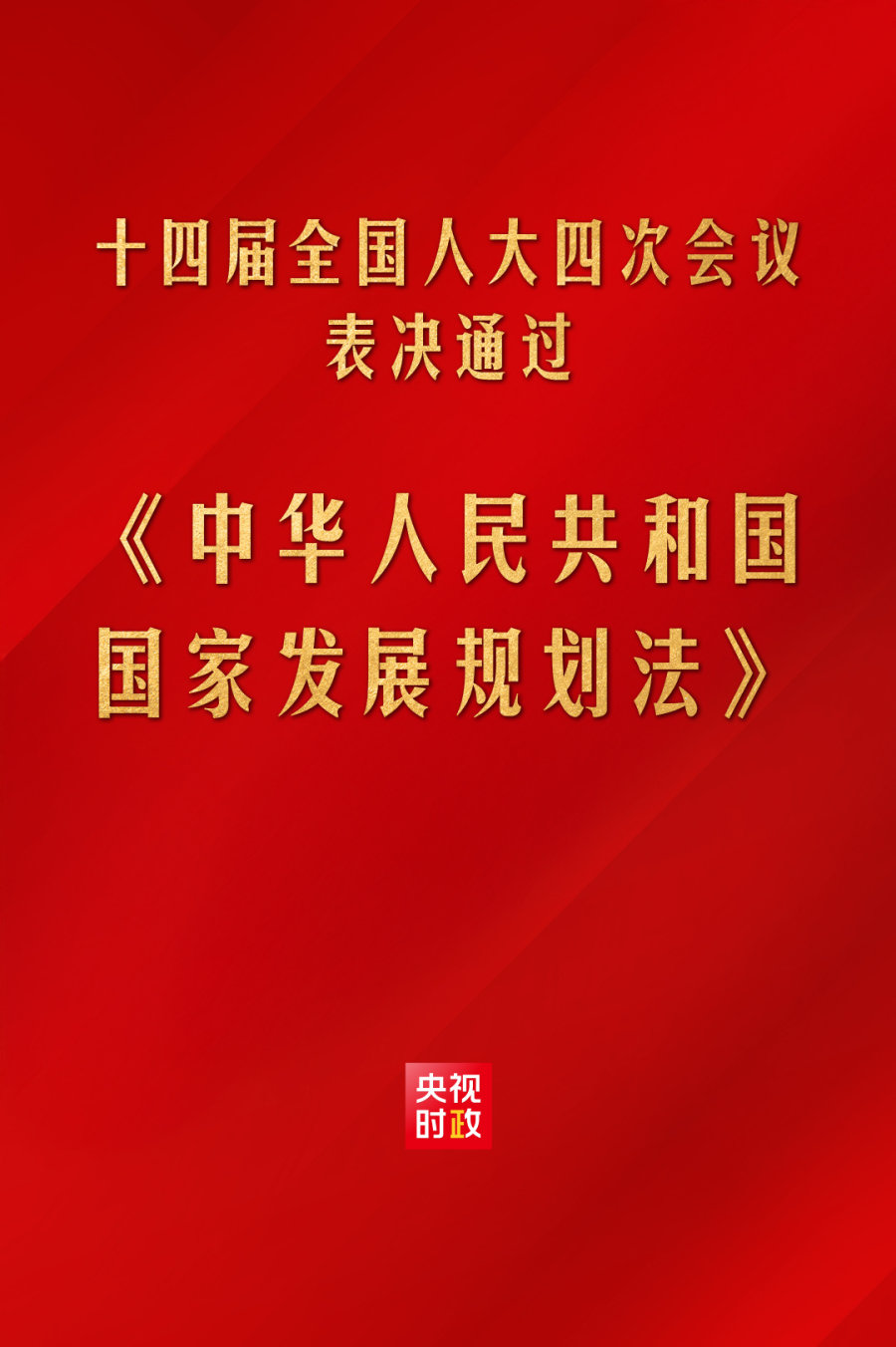 十四届全国人大四次会议表决通过《中华人民共和国国家发展规划法》。