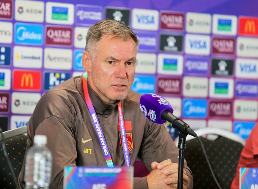 3月13日,中国女足主教练安特·米利西奇在新闻发布会上。新华社发(周丹 摄)