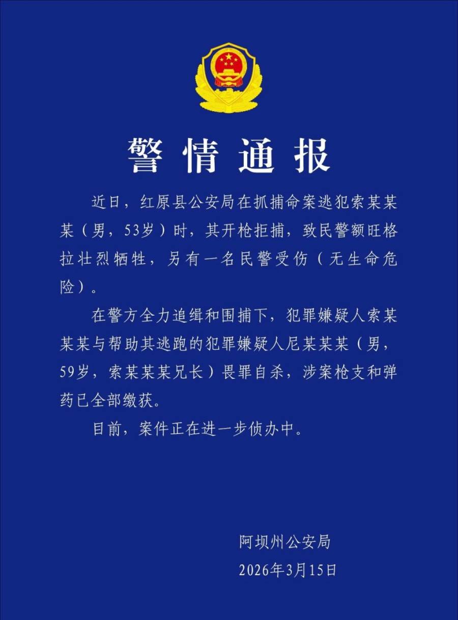 四川一民警抓捕命案逃犯时壮烈牺牲,两名犯罪嫌疑人畏罪自杀
