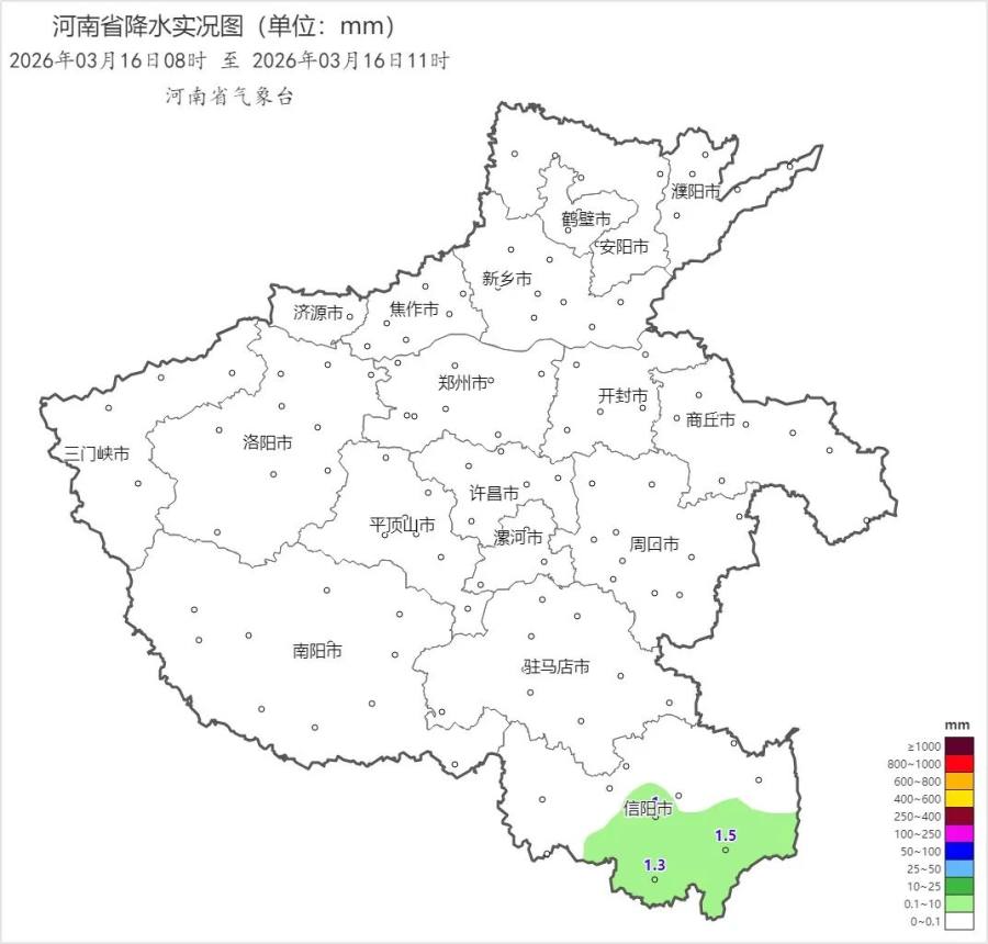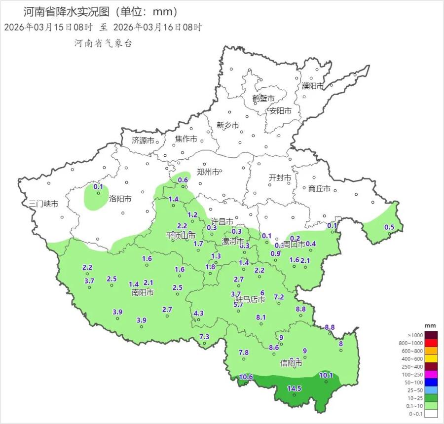 15日我省中南部出现小雨,其中信阳南部中雨,新的一周全省大部拨云见日,仅东南部还有小雨或零星小雨,下午也将逐渐转停。