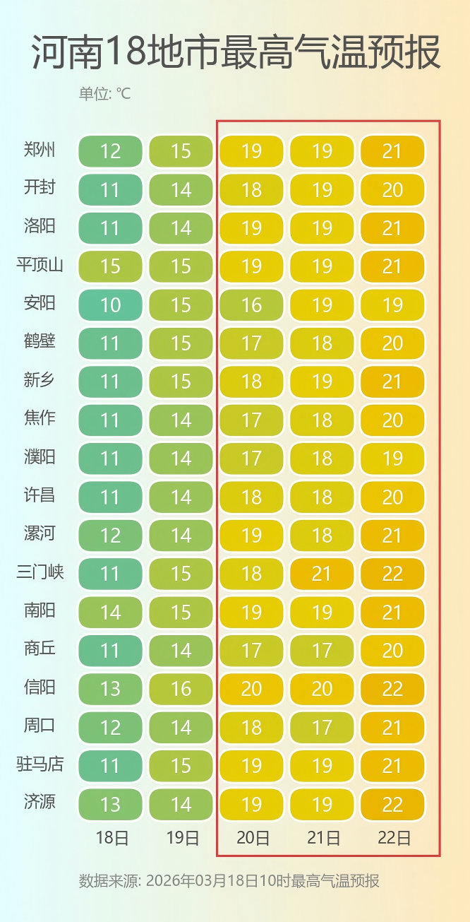 来源:河南省气象台2026年3月18日12时预报