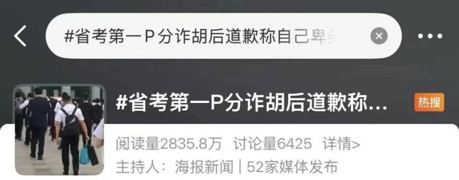 有媒体发文提醒,该事件暴露的不只是某个考生的品行问题,还暴露了公考查分规则的漏洞。现在公考,考生只能查到自己的分数和排名,看不到同岗位对手的真实分数。这就给了别有用心的人可乘之机。