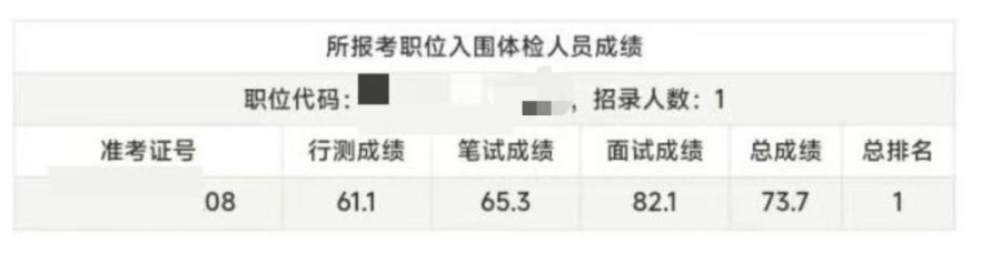 所报考职位入围体检人员成绩截图。图/受访者提供