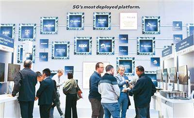 日前,2026年世界移动通信大会在西班牙巴塞罗那举办。图为人们在芯片技术展台参观。新华社记者 程 敏摄