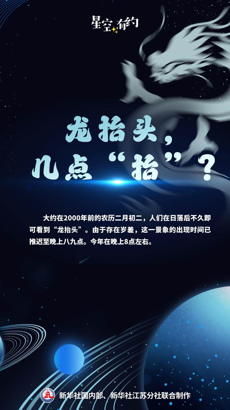 “除了岁差经年累月的影响,相同恒星天象在一天中出现的时间与公历日期的早晚也有关系。今年‘龙抬头’对应的公历日期比较迟,看到的时间点会相对较早,在晚上8点左右。”王科超说,届时不妨仰望东方夜空,看这条“苍龙”如何在春分的晚上缓缓“昂起头”来。