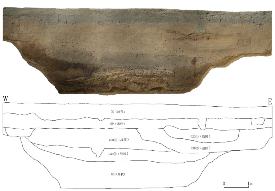 郑州商城东南部水系遗存:自然河道改造段(从西向东)
