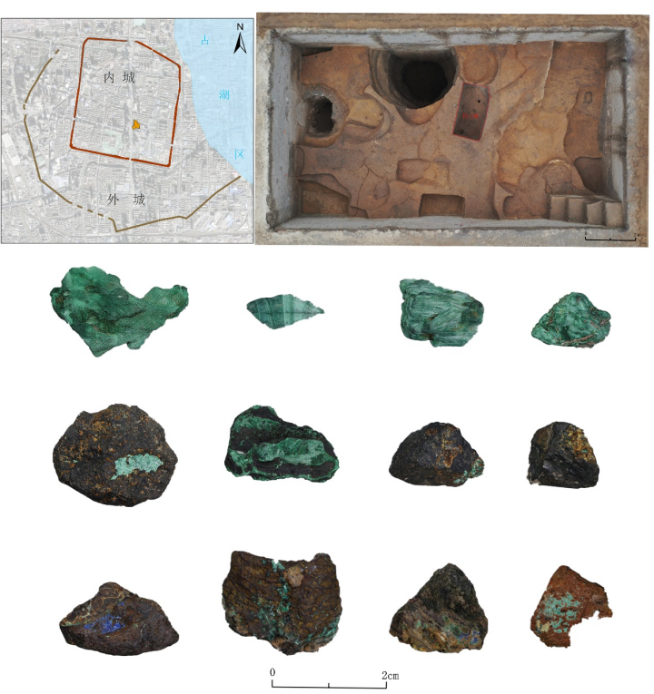 铸铜遗存位于内城东南部,出土有陶范、石范及近400块铜矿石等冶铸遗物。陶范、石范的批量出土,直接反映出商城内城区域明确存在铜器铸造加工工序,而铜矿石遗存,则进一步暗示该地点极有可能还配套开展了铜矿石初级冶炼环节。这一系列关键遗存的发现,首次证明了郑州商城内城存在规模化铸铜手工业,彻底改写了以往学界公认的“郑州商城铸铜遗存仅分布于城外、内城无铸铜手工业”的传统认知。