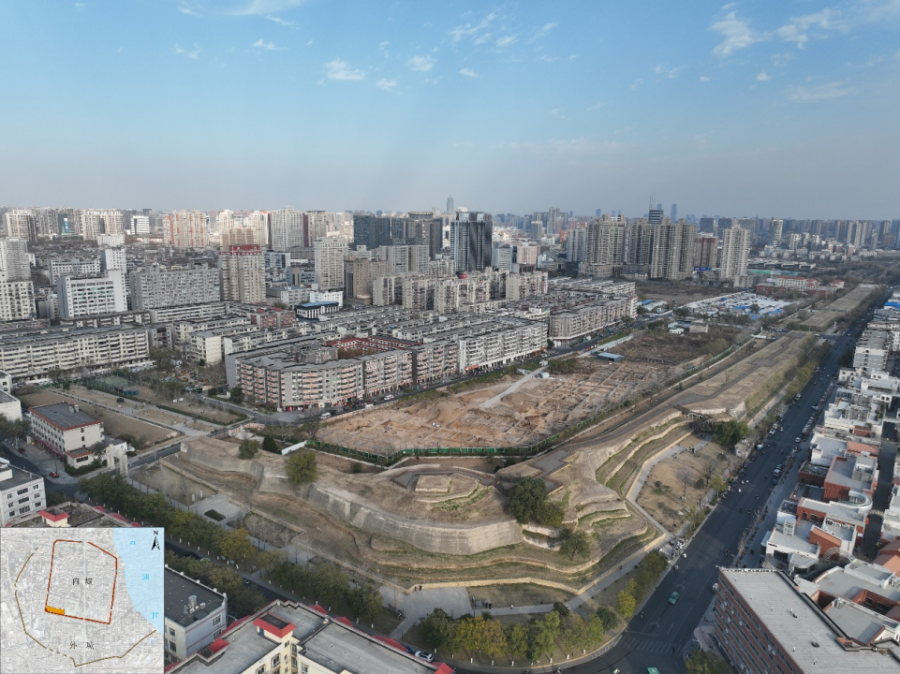 郑州商城西南角发掘点航拍图 (从西南向东北)
