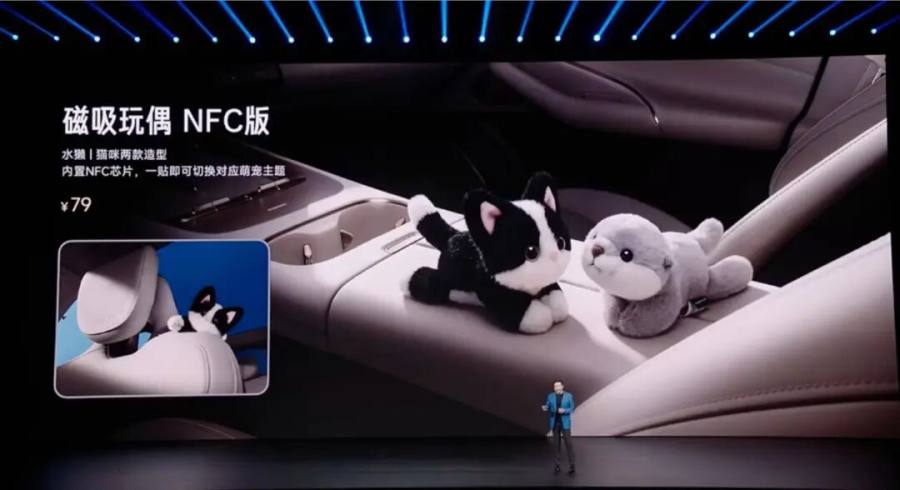 还有个特别“小米味儿”的细节:全车新增了9处磁吸点位,支持磁吸玩偶NFC版。车里还内置了NFC芯片,你把小米的萌宠玩偶往上一贴,车机主题直接切换成萌宠模式。