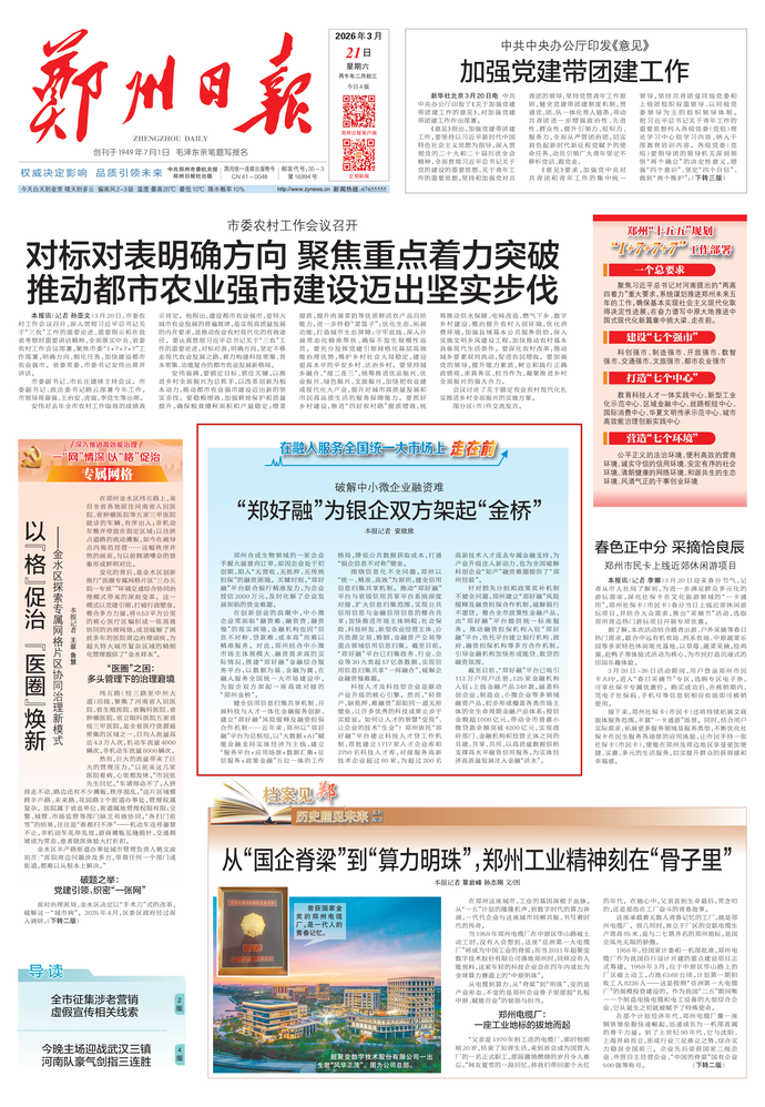 科技人才及科技型企业是驱动产业升级的核心引擎。然而,“轻资产、缺抵押、难融资”却如同一道无形壁垒,让许多优秀的科技成果止步于实验室。如何让人才的智慧“变现”、让企业的技术“生金”?郑州依托“郑好融”平台建立科技人才贷工作机制,首批建立1717家人才企业库和3750名科技人才库,对接服务高新技术企业超过80家,为超过200名高新技术人才送去专属金融支持,为产业升级注入新动力,也为全国破解科创企业“知产”融资难题提供了“郑州经验”。