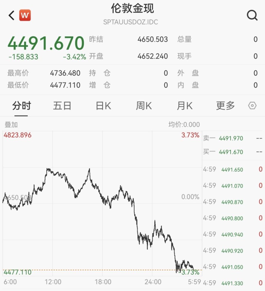 现货黄金价格跌破4500美元,创43年最大单周跌幅