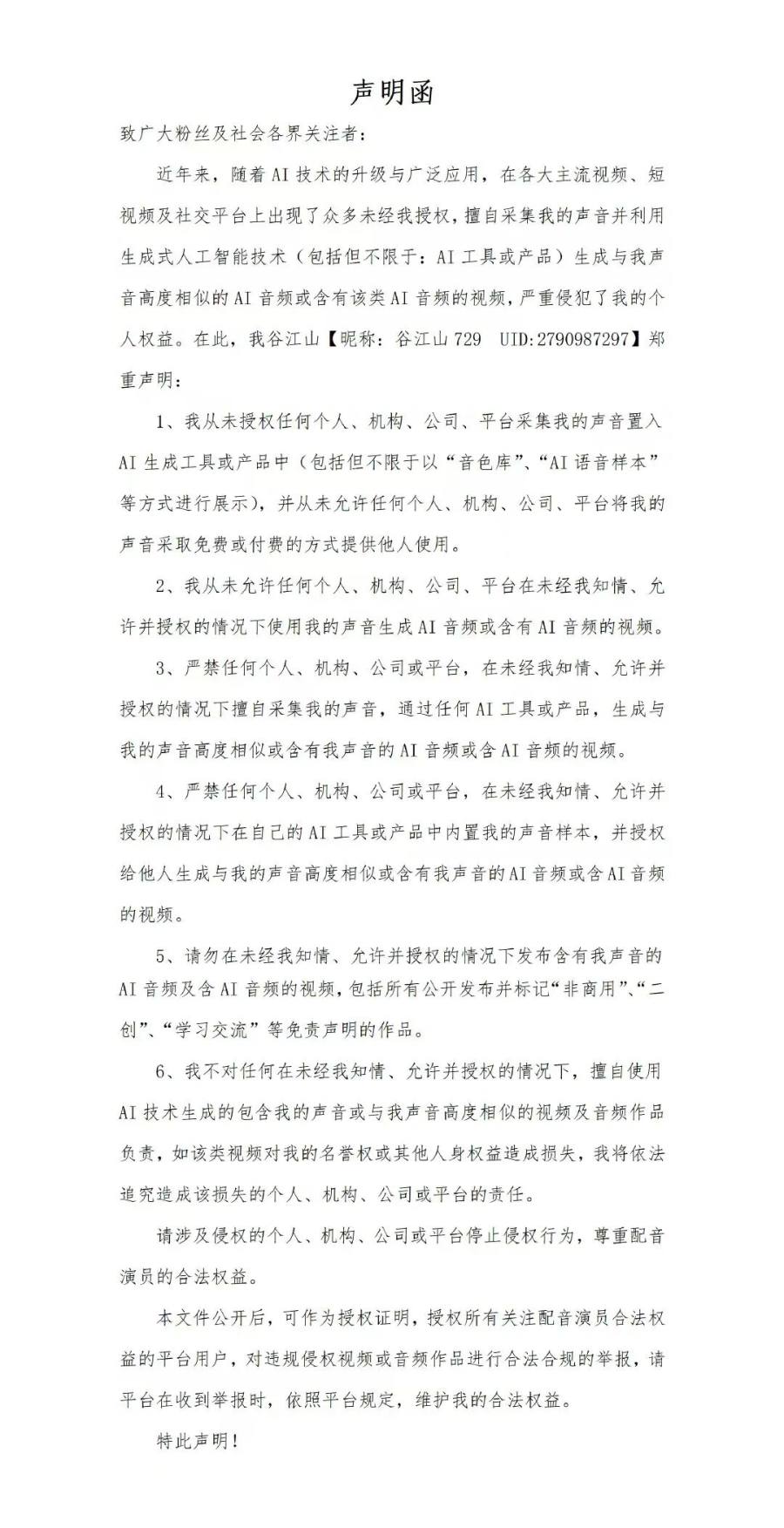 拒绝AI“偷声”,多位知名配音演员集体维权