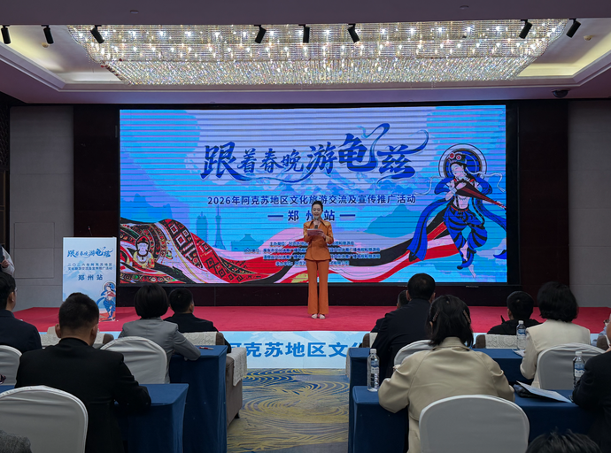3月24日,由阿克苏地区文化体育广播电视和旅游局主办的“跟着春晚游龟兹”2026年阿克苏地区文旅交流及宣传推广活动首站在郑州举行。来自天山南麓的文旅使者携龟兹古韵与边疆风情,与中原各界朋友欢聚一堂,共叙情谊、共话合作、共谋文旅发展新篇。