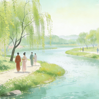 但《溱洧》写的是仪式之外的东西,是姑娘那句“再去一次”,是小伙子答应了,是水边那些没头没尾的笑,是最后那枝花。没说什么大道理,就是春天到了,想和一个人待一会儿。
