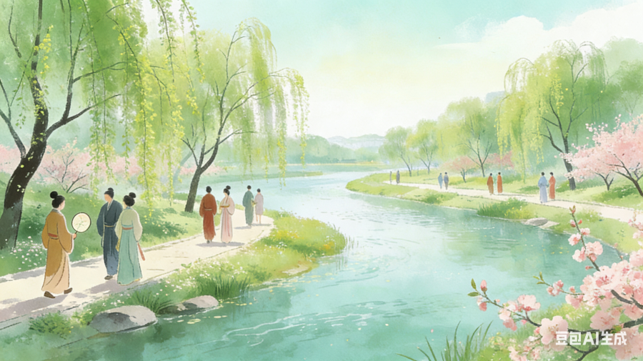 这跟一个古老的节日有关。古时,人们会在三月的第一个巳日举行祓禊仪式——到水边洗洗澡、祛祛晦气。《周礼》里写“祓除衅浴”,《论语》里曾点说“莫春者,春服既成,冠者五六人,童子六七人,浴乎沂,风乎舞雩,咏而归”,讲的都是这件事。