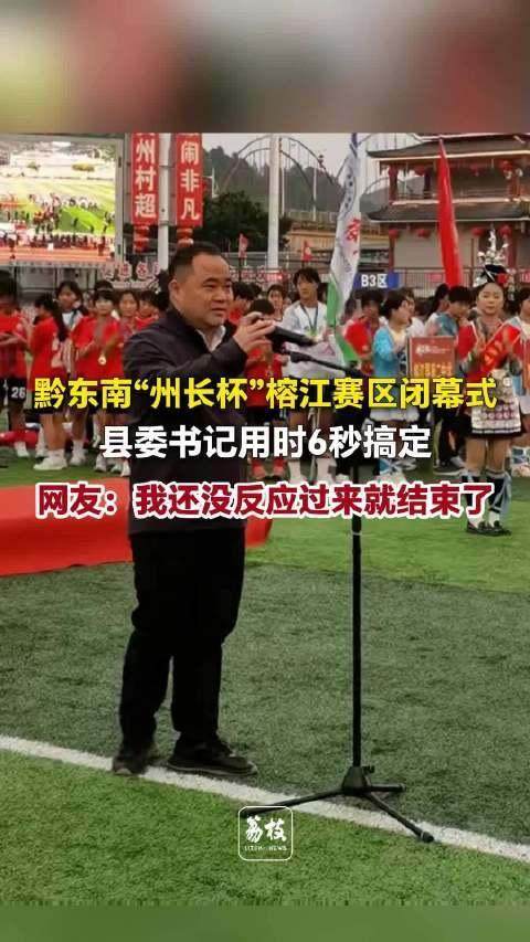 3月31日,在贵州黔东南“州长杯”青少年校园足球联赛榕江赛区闭幕式上,县委书记致辞时只说了两个字——“闭幕”,加上走过去的时间,短短6秒就结束,当时全场都愣了一下,随即爆发出热烈的掌声和欢呼。
