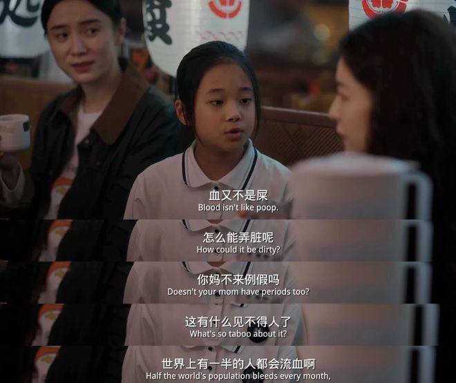 譬如“月经羞耻”,电影开篇就让许可为学生讲解月经和非月经出血的区别,她还在教室墙上钉了木盒,盒中装有卫生巾,供班内女生取用;《好东西》里则是在饭桌上,大方地谈论月经,“血又不是屎,怎么会弄脏(裤子)呢”。