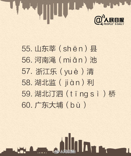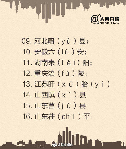 除了六(lù)安,还有60个地名容易读错!