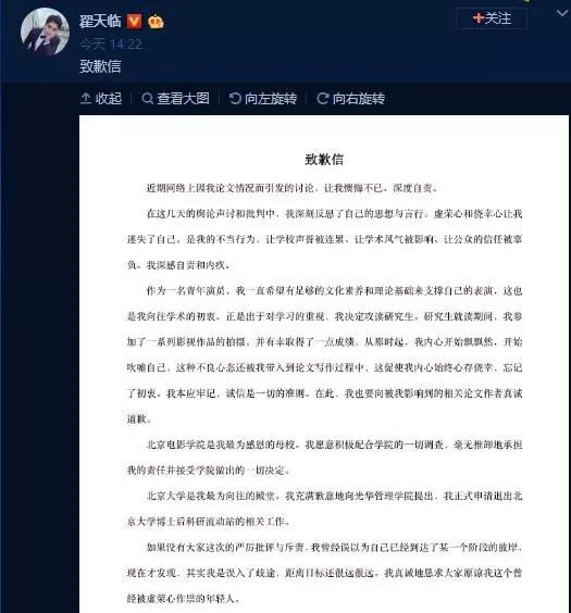 “论文季”遭狂骂,翟天临发文回应:我也有委屈