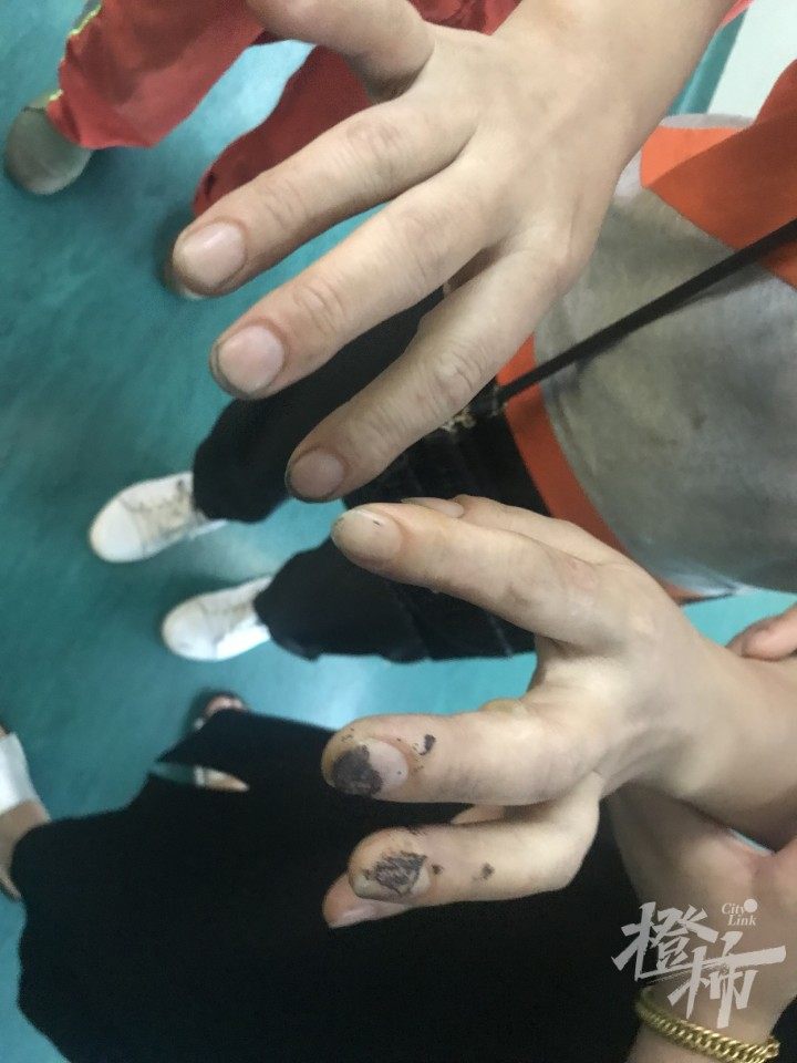 我的手也烧伤了。”