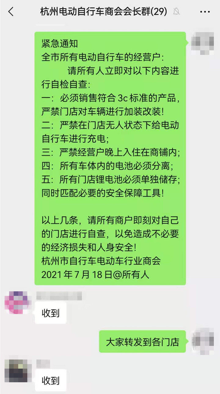 据林会长介绍,杭州市共有电动自行车销售门店2000多家,商会已经下发了紧急通知,内容如下: