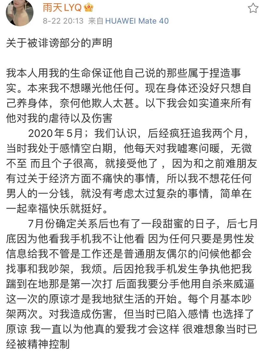 25日下午,记者从发帖女网友处了解到,涉事男方确实为雷某云,在她将遭遇家暴的情况发布在微博后,雷某云方面曾联系过她,“(他)道歉,说补偿,我说不需要,我不想跟他们有牵扯,不想被他们骚扰了。”
