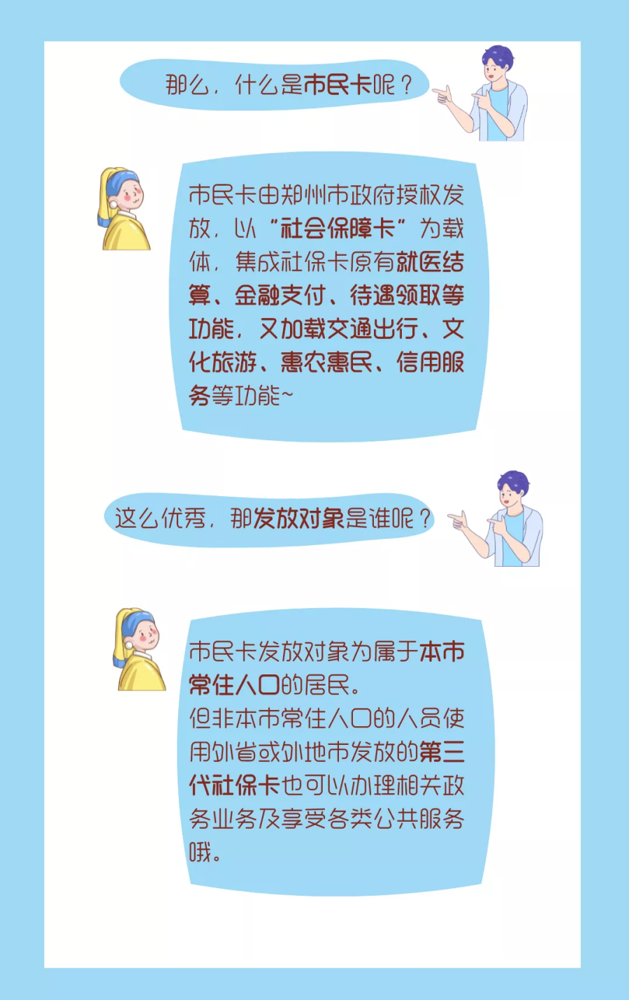 叮!大家知道郑州市民卡是怎样诞生的吗?为贯彻落实“探索以社会保障卡为载体,建立居民服务‘一卡通’”指示要求,郑州市相继出台《郑州市市民卡建设实施方案》《关于加快推进市民卡建设的实施意见》,因此便有了郑州市民卡。