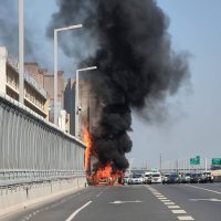 据瞿先生回忆称,或由于上述车辆油箱加满不久,在自燃之后,火势蔓延非常快。根据相关视频及照片,车辆被大火包裹住,且点燃了高架上的隔音板,黑烟滚滚。