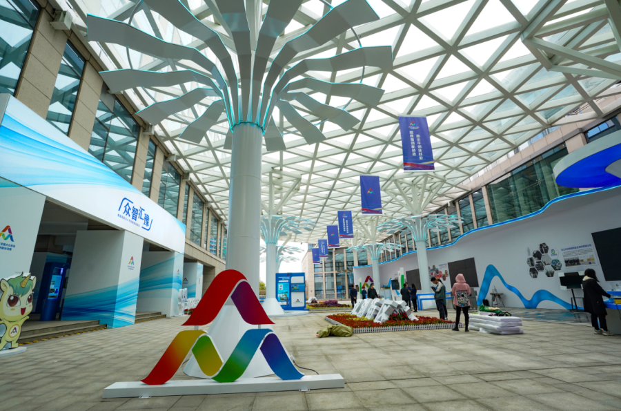 10月15日,郑州龙子湖智慧岛鲜花盛开,可爱的吉祥物绽放着灿烂的微笑,双创周气氛越来越浓。