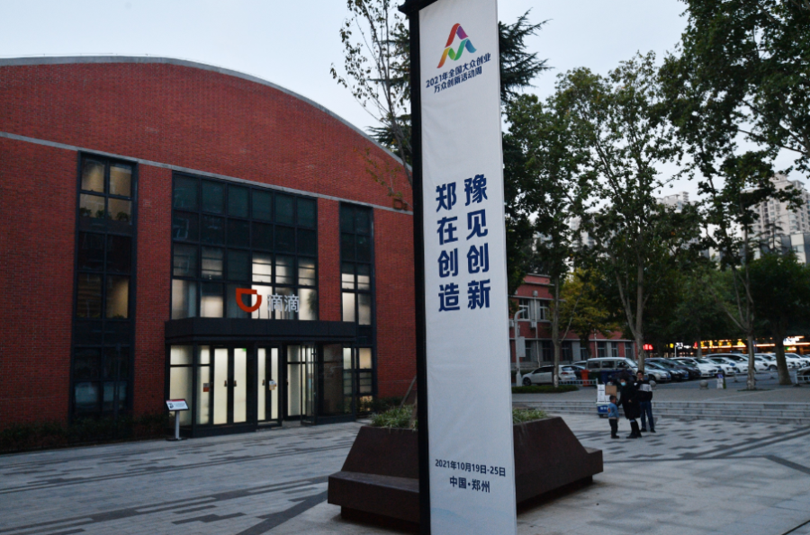 近日,郑州市中原区芝麻街1958双创园里旗帜飘扬,2021年全国大众创业万众创新活动周吉祥物“壮壮”和“郑郑”卡通形象引人驻足,这里正以崭新的面貌迎接一场国家级“双创”盛会。