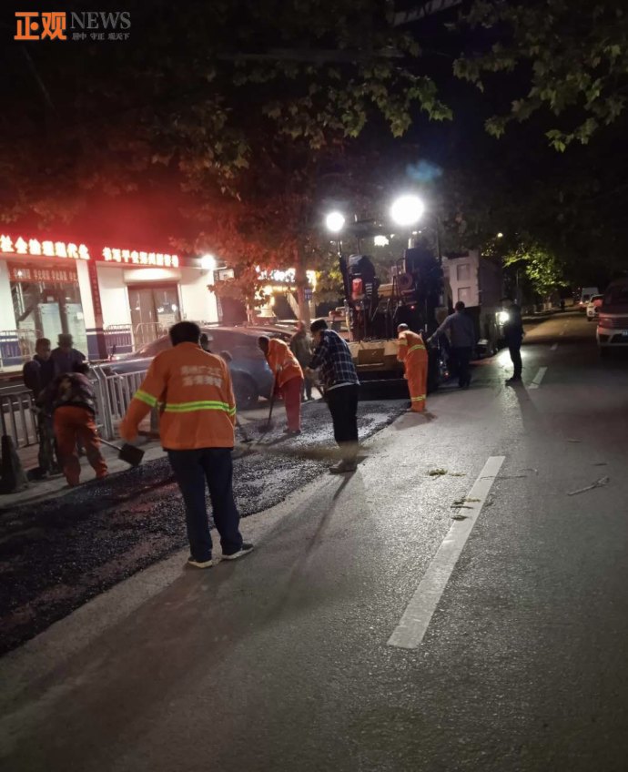 “我们从16日晚上12点开始加紧施工,一直到17日早上6点,凹陷路面从京广路保全街路口修复到交通路保全街,剩余50米将在17日晚上9点继续修复。”陈先生说。