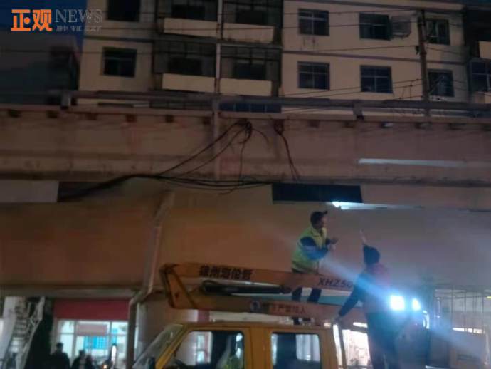 当日下午5时30分,郑州市城市照明灯饰管理处夜景养护所的4名应急抢修人员和一辆高空作业车到达现场,开展义务抢修工作。