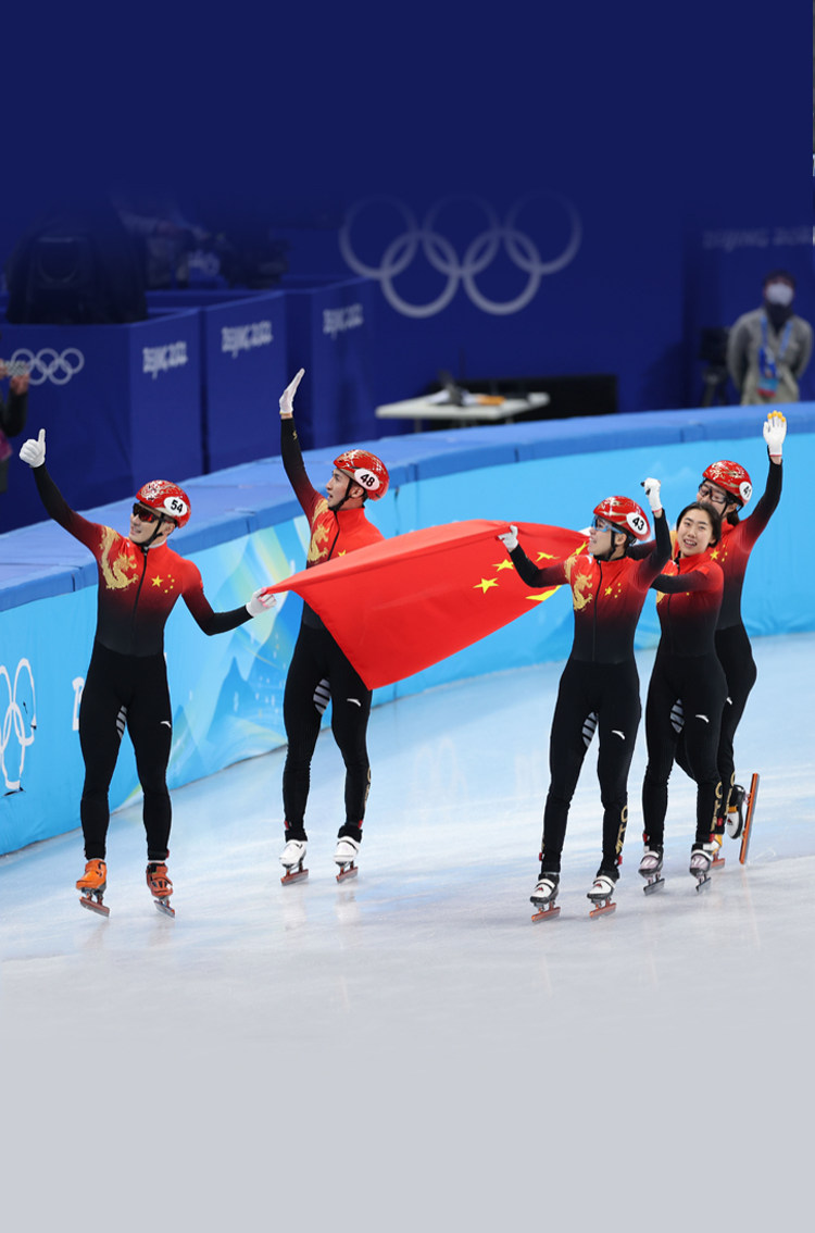在5日晚结束的短道速滑混合团体接力决赛中,中国队率先冲过终点,为中国体育代表团拿到本届冬奥会首枚金牌。
