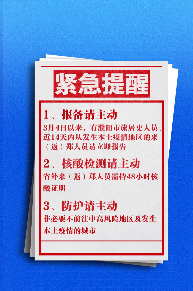 郑州紧急提醒:主动报备!主动检测!主动防护!