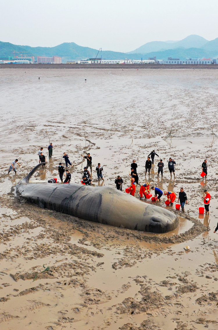 送你回大海!宁波象山搁浅抹香鲸成功脱困