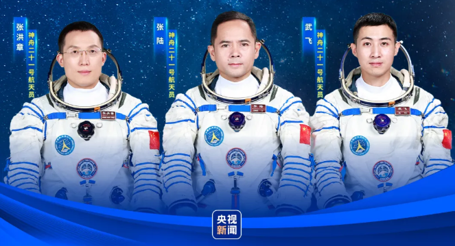 “神舟二十一号瞄准北京时间10月31日23时44分发射,航天员乘组由张陆、武飞、张洪章3名航天员组成。”