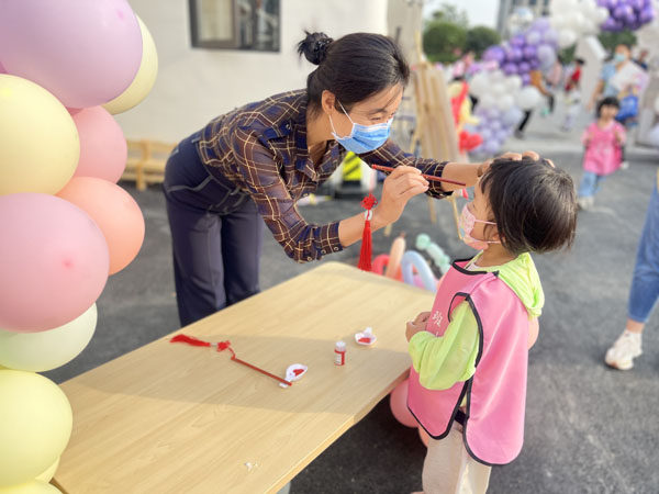 在汉武路西园区:一颗颗朱砂红痣点在小朋友们的双眉之间、正眉心处,代表的是给每一位小朋友开启智慧,以此寄托美好的愿望,希望孩子们们从此心明眼亮,这一颗颗红痣,包含着我们父母、老师、亲人最美好的祝福。成长跨栏:孩子们跨过一道道充满祝福的“期望之栏”,不仅充满童趣,又寓意满满,望孩子们带着美好的祝福和期待开启新的篇章。许愿卡:“许愿树”上挂满了家长为孩子们精心准备的心愿卡,寄托着父母对孩子们的美好期望和满满的爱,新的征程,愿所有的花开都不负等待,愿幼儿的每一天都平安快乐。