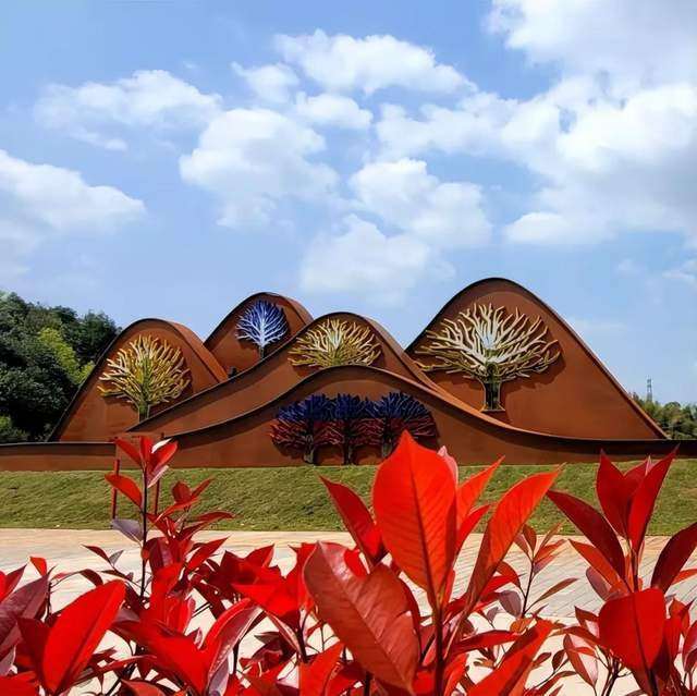 舒勇在最初设计《江山多娇》时为作品留足了科技升级的空间,大量留白可以安装感应环境温度湿度、风向风速、入园人数、动植物种类等实时数据的信息平台。根据数据分析,还可将作品上方的耐候钢变化为绿色、铁锈色、橙色、红色,作为防火等级的鲜明标识。通过数据联网形成大数据,还可以为生态文明建设提供数据支撑。