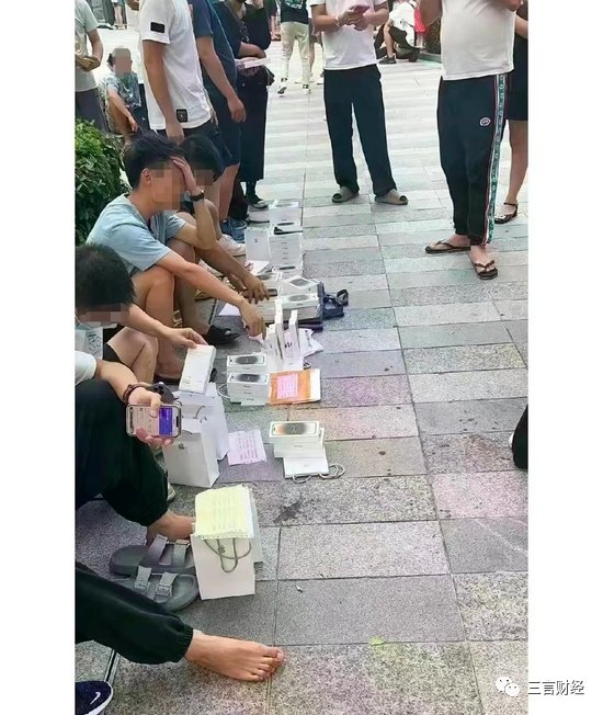 当时,三言亲眼看到有人拎着五、六部全新的iPhone交给等待收货的黄牛,哥儿几个脸上洋溢着收获的喜悦,说不定心里正盘算这这几天能赚多少钱。