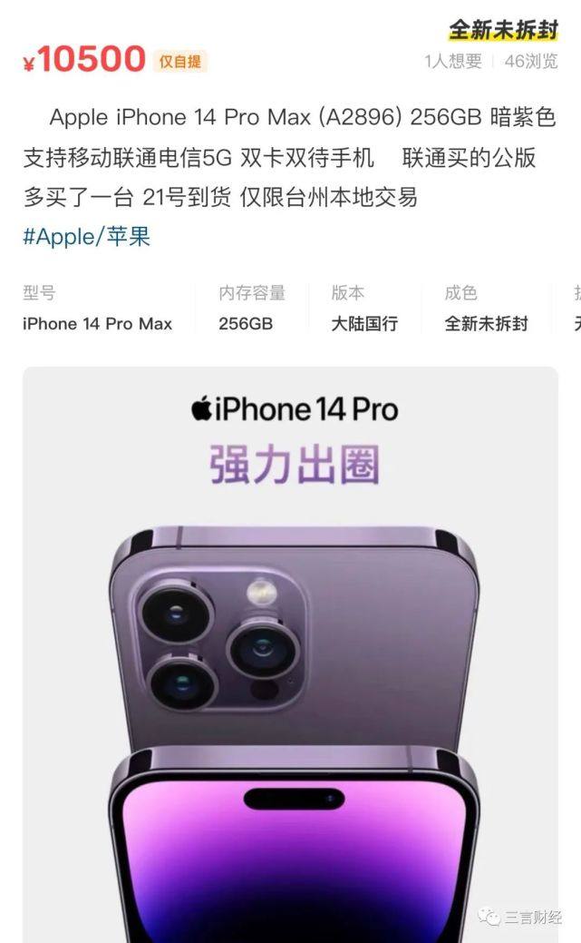 一位加价600元将手上的iPhone 14 Pro Max 256G版卖出的卖家告诉三言财经,自己发售当天就拿到货挂上链接,但是直到今天才卖出去。他直言这次买家很少,都差点以为自己卖不动了。