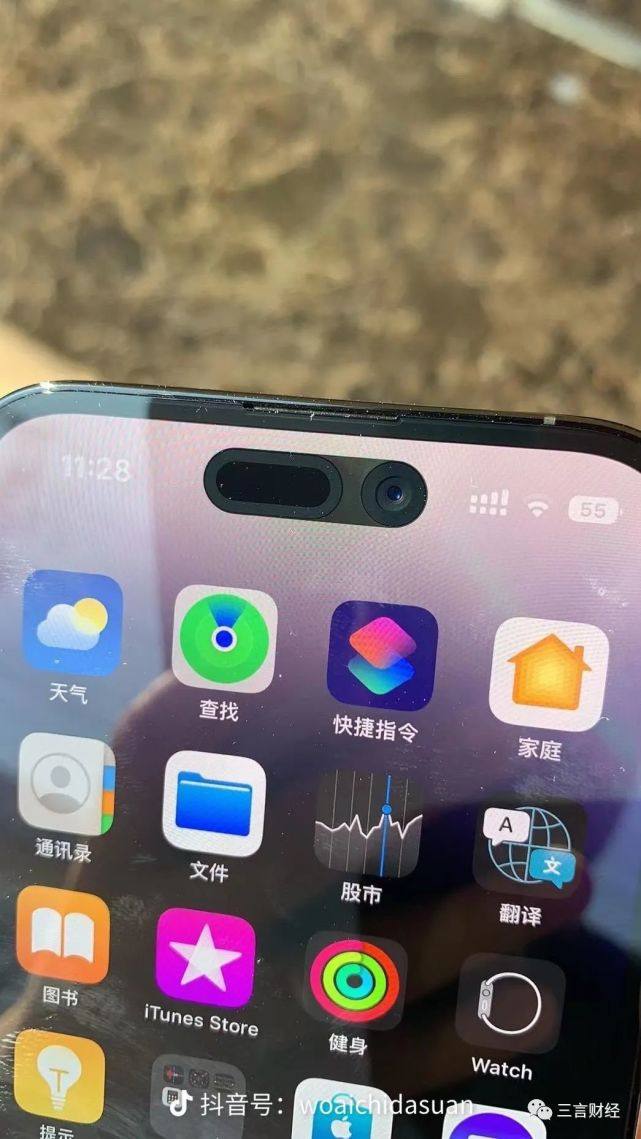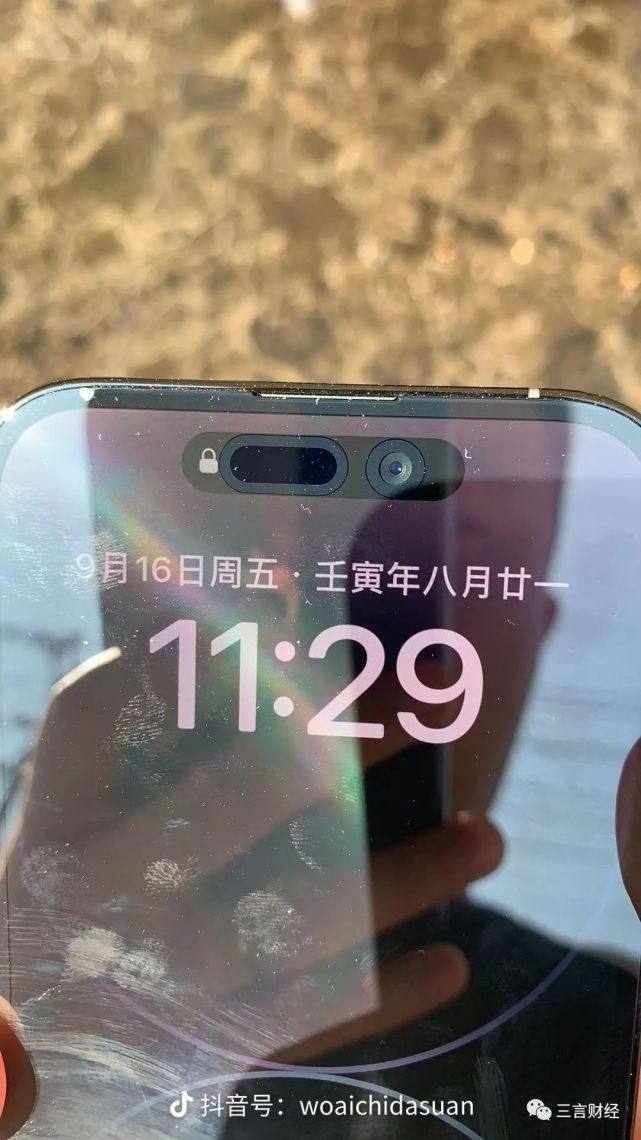 第一,在强光下会明显看到“灵动岛”和屏幕有色差,用户能肉眼看到“灵动岛”内部的元器件,这在观感上很别扭。