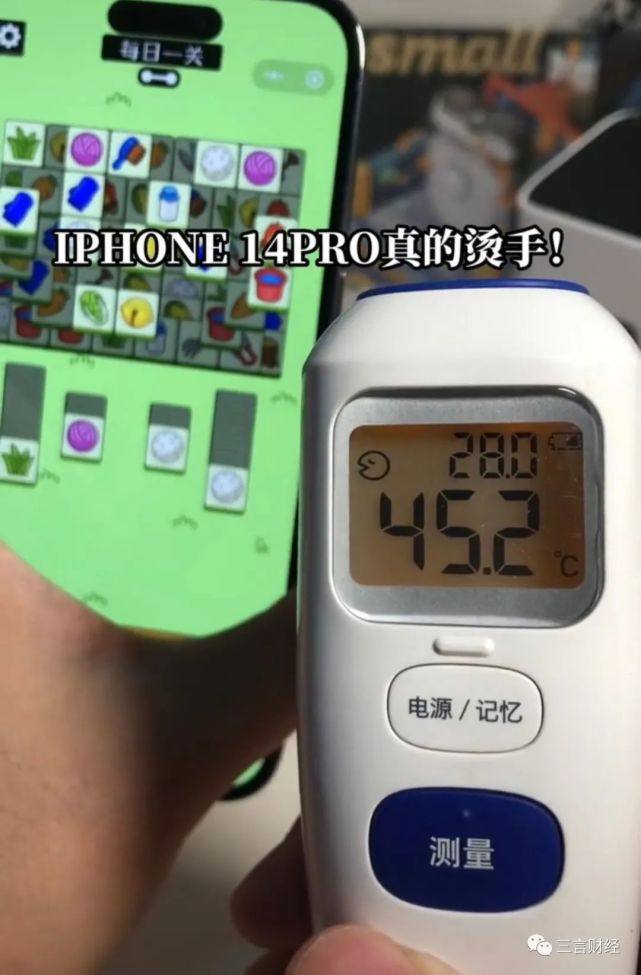 三言财经发现,在社交平台上吐槽iPhone 14发热的用户非常多,甚至有用户称自己玩两个小时《羊了个羊》手机温度就达到45度烫手的程度。