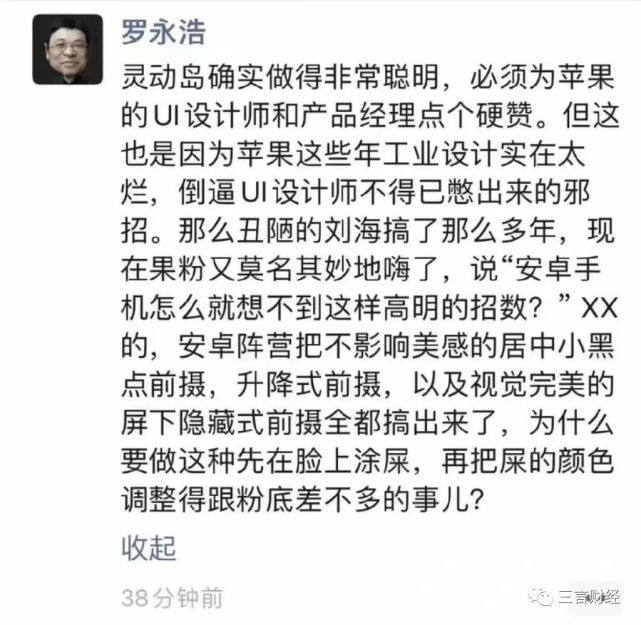 罗永浩的前后两段评价和大部分网友观点一致,也是这两天关于“灵动岛”设计的主要争议之一。