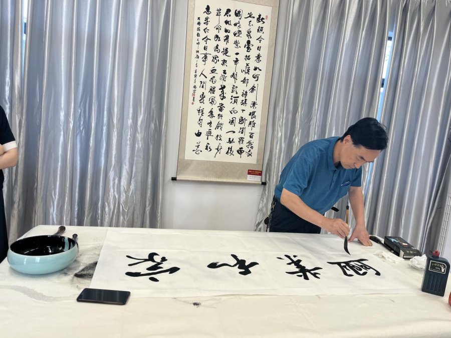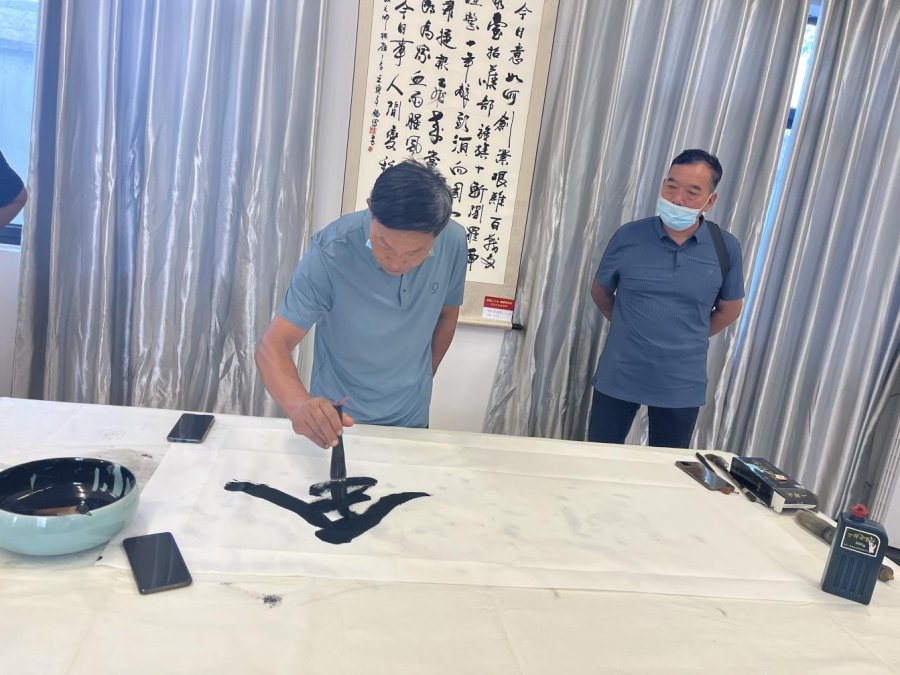 在展览现场,市文联主席王镜宾为大家作现场讲解,详细解读作品的书写技巧、内容含义和作品背后的一些细节,增进了大家对书法艺术的了解和认识。几位书法家现场泼墨挥毫,书写作品,让在场人员近距离体会书法之美。