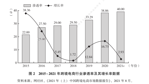网经社:《2021 年(上)中国跨境电商市场数据报告》, 2021 年 8 月, http://www. 100ec. cn/ home/ detail-6598833. html。