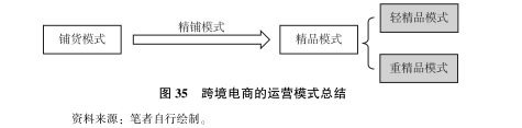 经过如上总结, 可知跨境电商的稳态运营模式包括铺货模式、 轻精品模式、 重精品模式三种, 而精铺模式只是一种过渡状态 (见图 35)。那么, 轻精品模式、 重精品模式哪一个会成为主流呢?后面会分析这个问题。