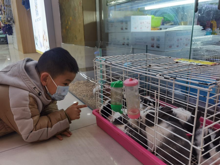 1月19日下午,走进位于大学路与政通路附近的陈砦花卉文玩城店,只见五彩斑斓的鲜花占据市场主流。红火的年宵花带来满屋的喜气和生机,满枝祥瑞一开,弥漫满室活色生香。不少市民表示,抱几盆年宵花回家过大年,会让家中充满红火中国年的味道。漫步各楼层,琳琅满目的文玩、字画、茶具、家居、服饰、宠物店也吸引市民纷至沓来。小白兔、垂耳兔、侏儒兔、安哥拉兔……多家宠物店门口稳坐“C位”的兔子,引得众多市民纷纷停下脚步。在“爱宠一家”宠物店门口,市民王婷正带着五岁的儿子与兔子互动。“今年是兔年嘛,儿子就喜欢这种温顺的小动物,这次是专门让来买只兔子回家饲养。”看着这么多活泼可爱的兔子,几位小朋友说,兔年快到了,他们特别想把小白兔带回家。