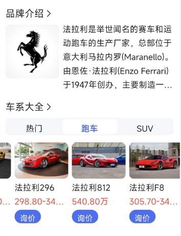 法拉利 是举世闻名的赛车和运动跑车的生产厂家,总部位于意大利马拉内罗(Maranello)。由恩佐·法拉利(Enzo Ferrari)于1947年创办,主要制造一级方程式赛车、赛车及高性能跑车。